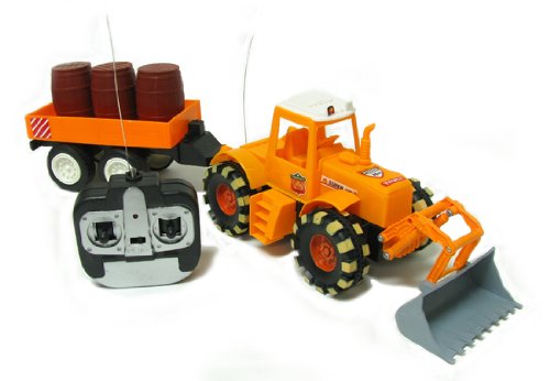 This Super Hauler RC Tractor Construction Vehicle is sure to be a big help with any new farmer! This RC Tractor is ready to work all day with its powerful motor and big tractor tires. If you need some digging done, the Super Hauler RC Tractor is for you with a big front bucket to dig and scoop up anything you need. The tractor also has a convenient trailer to help carry anything you need while on the farm including the 3 farm barrels inside the trailer! All you need to help out on the farm is 6 AA batteries, 4 for the Tractor and 2 for the controller. So hurry and get yours today and lets see what you can do on your farm!Features:Electric PoweredFull Function TransmitterTractorTrailer with 3 Farm BarrelsDetailed DecalsIncludes:Super Hauler Electric RTR RC TractorConstruction VehicleTransmitterTrailer3 Farm BarrelsSpecifications:Length: 19 InchesWidth: 4.5 InchesHeight: 4.5 InchesBattery Requirements:4 AA Batteries for the Tractor (Not Included)2 AA Batteries for the Remote (Not Included)